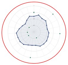 This provides an instant overview of the areas of strength and those areas needing improvement. Click on the blue or green dot to be taken to that individual aspect and continue your review.